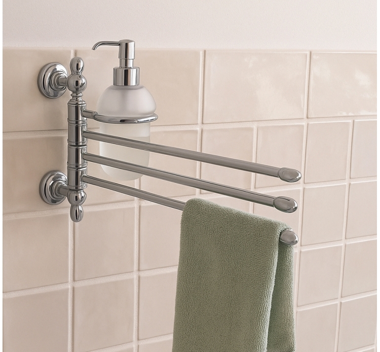 Leslingettes p orta sont faites avec trois tiges roulantes pour les lingettes bidet et une plaque de savon ronde en verre de satin. Tous les éléments se tournent les uns les autres pour les adapter à tous les besoins d’espace. L’article est facilement fixé au mur avec des vis et des douves qui garantissent la meilleure stabilité possible. Cet accessoire comme les autres dans les collections d’idearredobagno est fabriqué à la main avec un processus de haute qualité et est garanti anti-rouille.