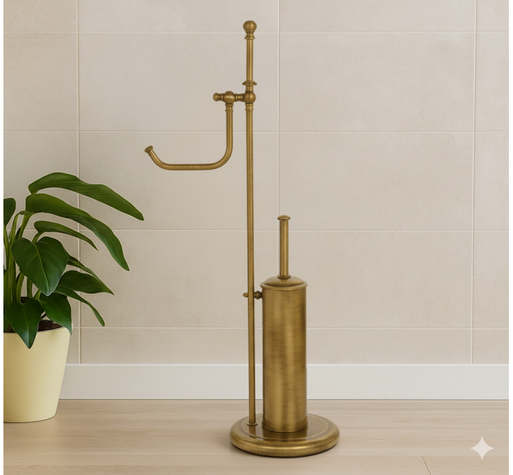 FLOOR LAMP FURNITURE-BATHROOM WITH A DUAL FUNCTION TOILET BRUSH HOLDER AND PAPER HOLDER MADE OF BRASS AND THE ENGLISH-STYLE