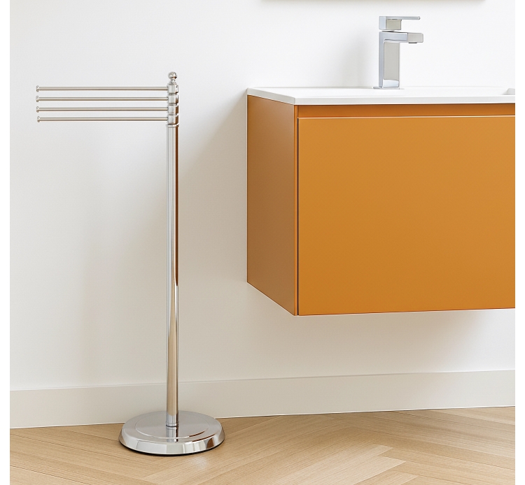 The planter carries wipes with four straight bath rods, is a modified version of the classic sink towel planter, created to meet the needs of the most numerous families. The four rods can be rotated to comfortably spread all the bath wipes without overlapping each other. All the floor plantains of the Spring Line are made of brass,follow a line with a classic taste of great elegance and are available in different color finishes: chromed steel, bronze, gold, white.