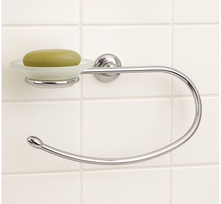 Accessory bathroom two-functions, towel ring and soap holder in satin glass