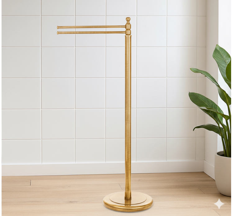PIANTANA DA BAGNO PORTA ASCIUGAMANI A DUE ASTE ROTABILI REALIZZATA IN OTTONE STILE VINTAGE SHABBY
