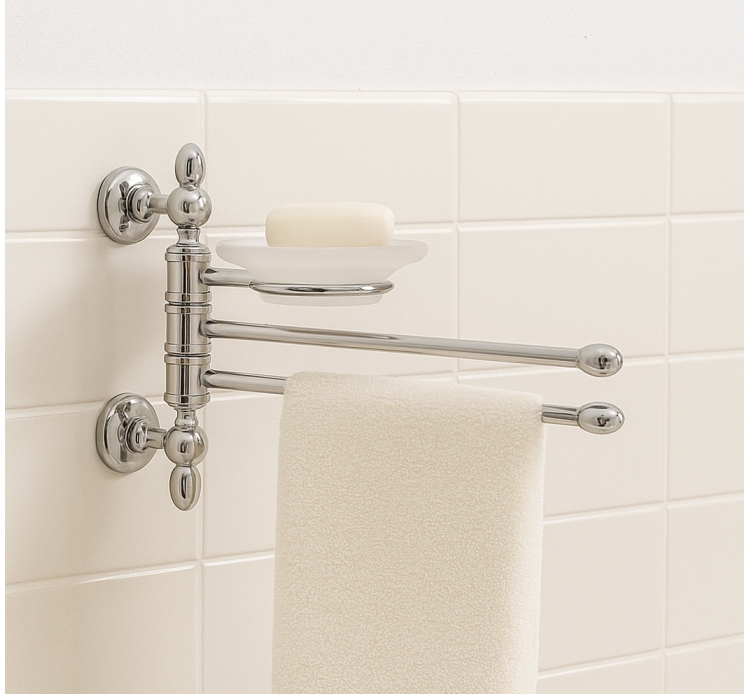 ACCESSORIO ARREDO BAGNO PORTA SALVIETTE DA BIDET SNODATO A DUE ASTE DA PARETE CON PORTA SAPONE